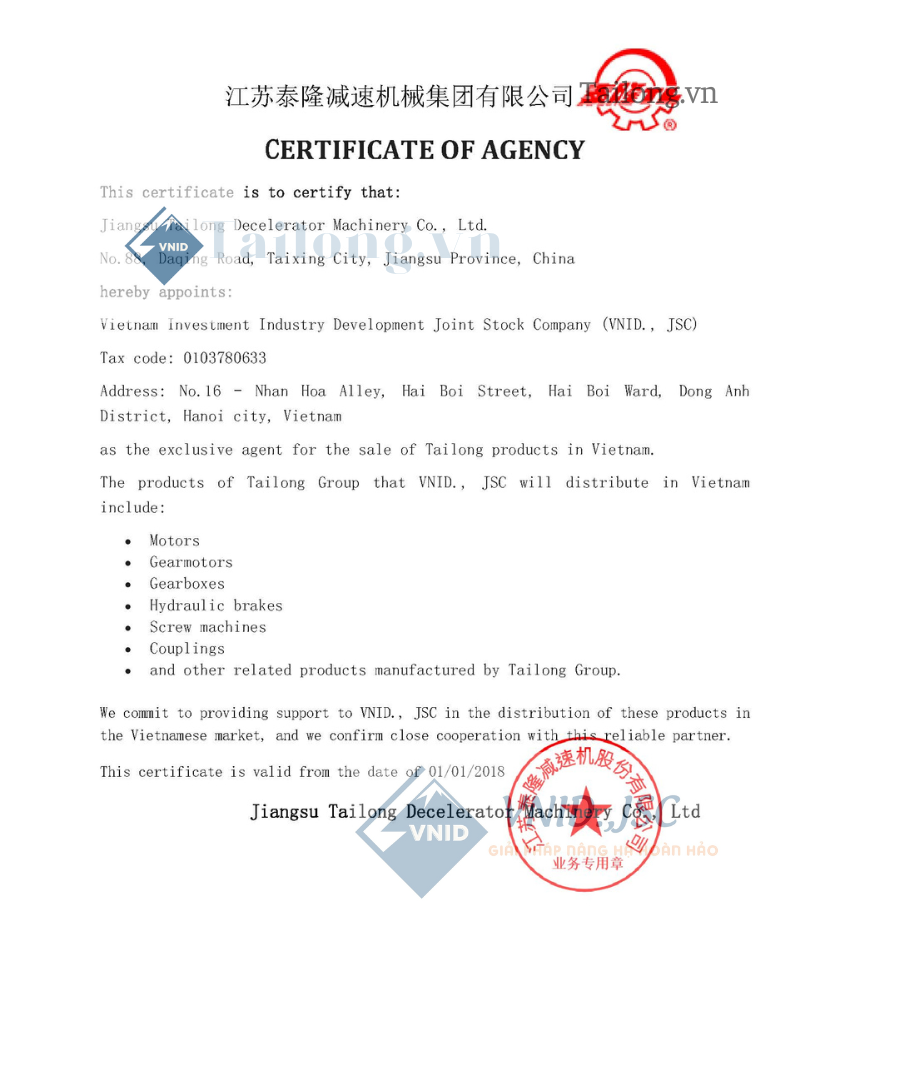 Bạn đang tìm kiếm sản phẩm của Tailong, một trong những thương hiệu hàng đầu về động cơ và hộp giảm tốc tại Trung Quốc? Đừng lo lắng! VNID., JSC sẽ đồng hành cùng bạn trên hành trình này.