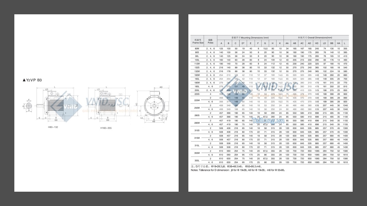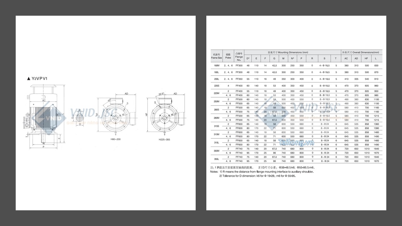 Hình ảnh: Các kiểu lắp đặt và kích thước lắp đặt của động cơ YVP Tailong