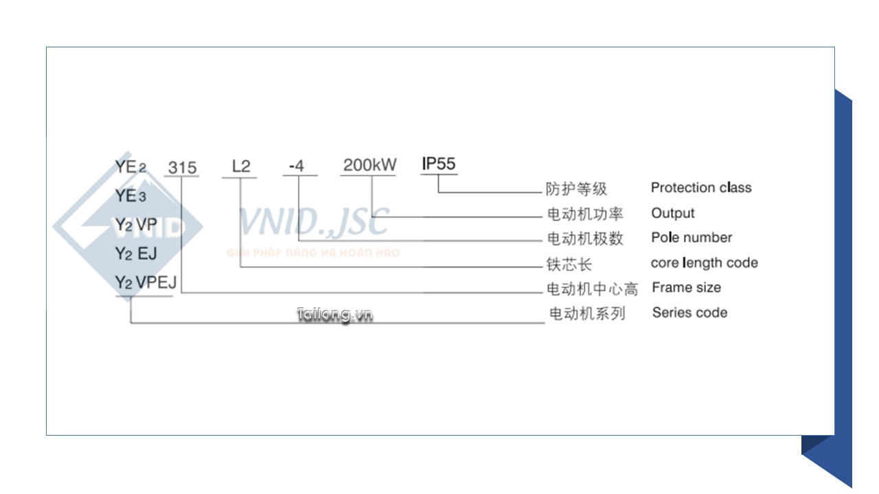 Hình ảnh: ý nghĩa mã hiệu cho động cơ không đồng bộ 3 pha Tailong
