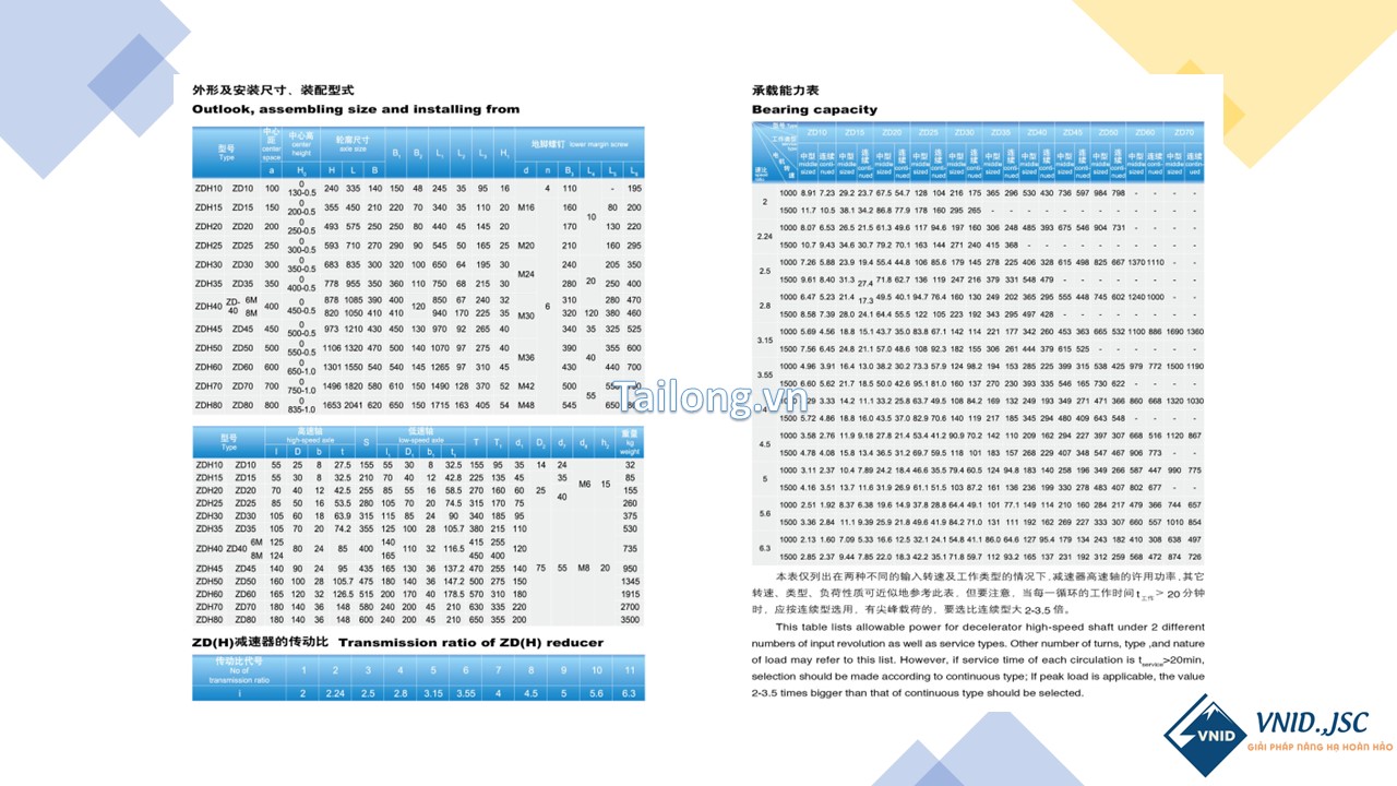 - Các thông số cơ bản của hộp giảm tốc model ZD và ZDH - Tailong, Trung Quốc