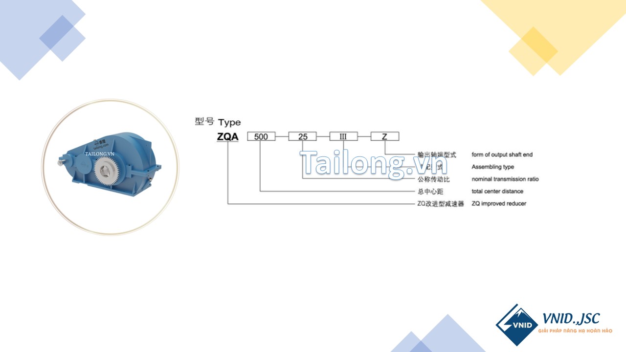 - Cấu trúc mã hiệu của hộp giảm tốc bề mặt bánh răng trụ ZQA - Tailong